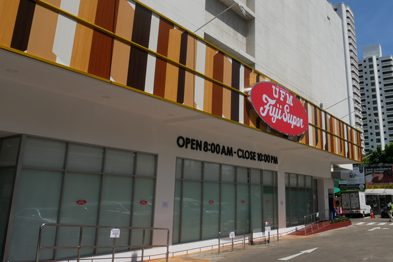 スクンビットソイ49の通り沿いに、日本食材が充実したフジスーパー4号店があります。日本ブランドの調味料や、日本のお酒、インスタント食品、お弁当、お刺身、惣菜などが手に入ります。