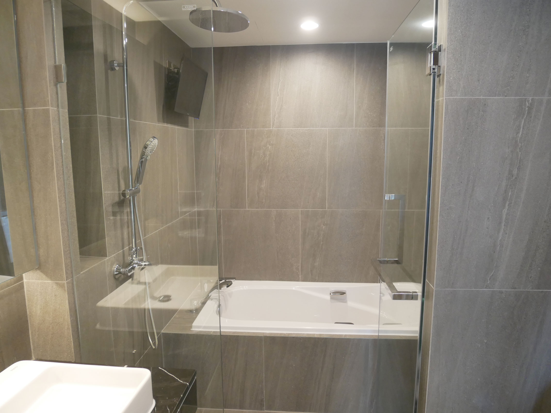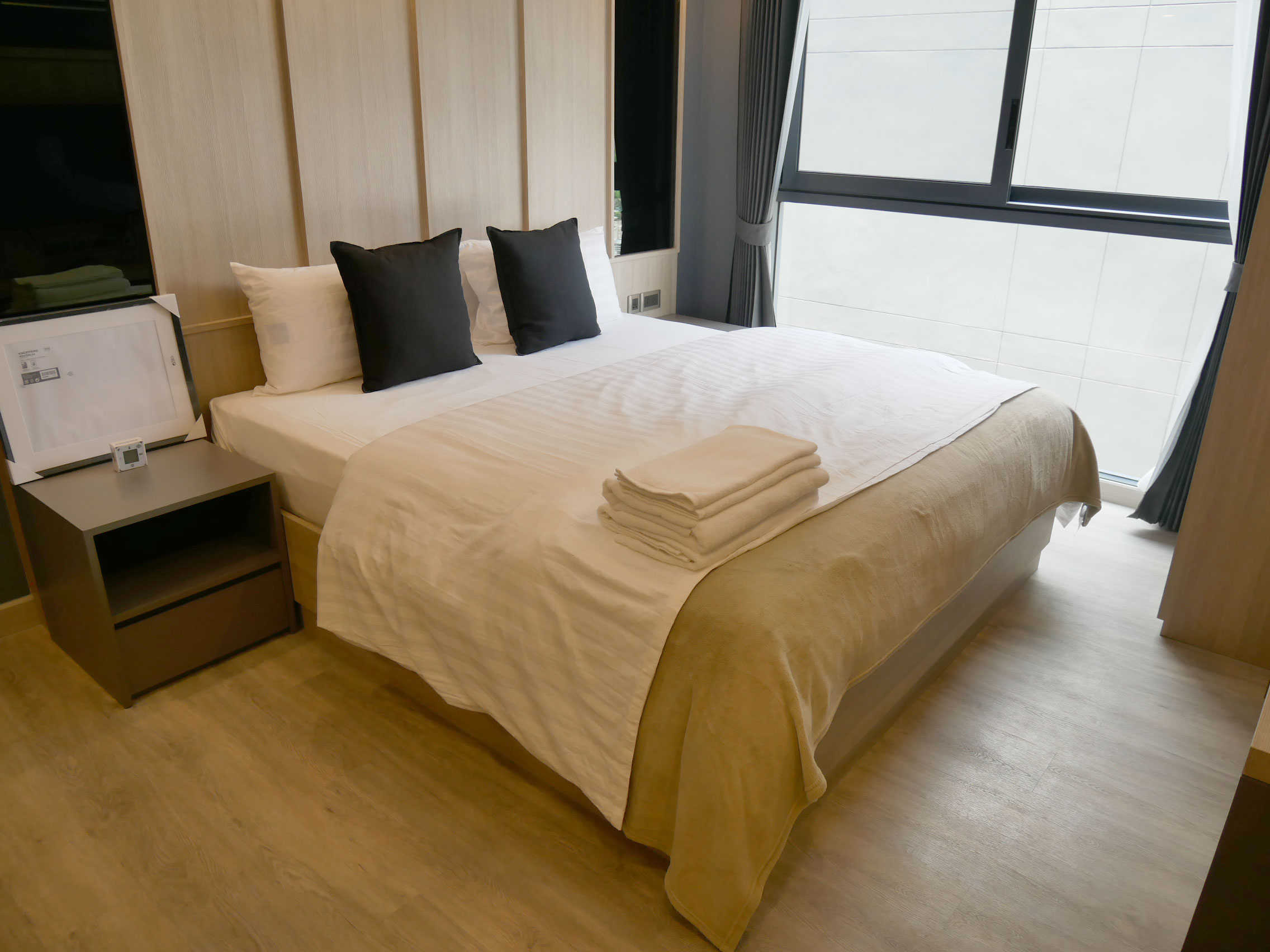 フローリングの床に、シンプルで品の良いインテリアで、日本人好みの明るくスタイリッシュなお部屋です。間取りはレイアウトと広さの異なるワンベッドルーム、ツーベッドルームから選べます。バスルームにはテレビがあり、自動感知センサーで動作するウォシュレット付きトイレや、外の様子がわかるセキュリティモニタなど充実した設備となっています。