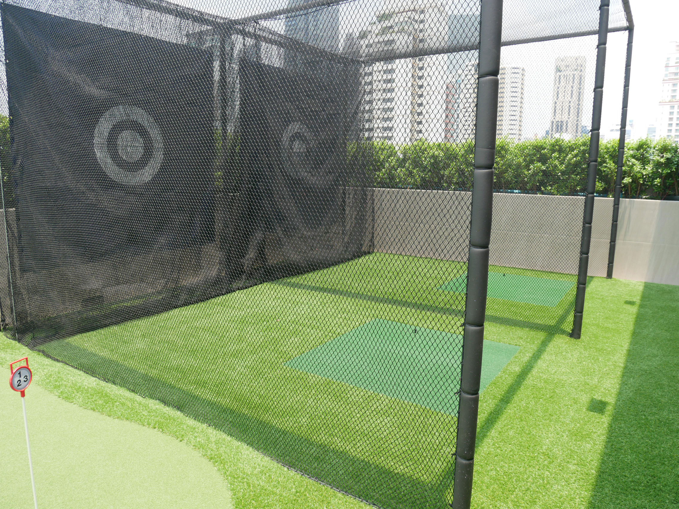 プール、フィットネスルーム、サウナ、子供の遊具、そしてゴルフの設備が充実しており、パター練習のできるグリーンや、打ちっぱなしができるゴルフレンジがあります。
