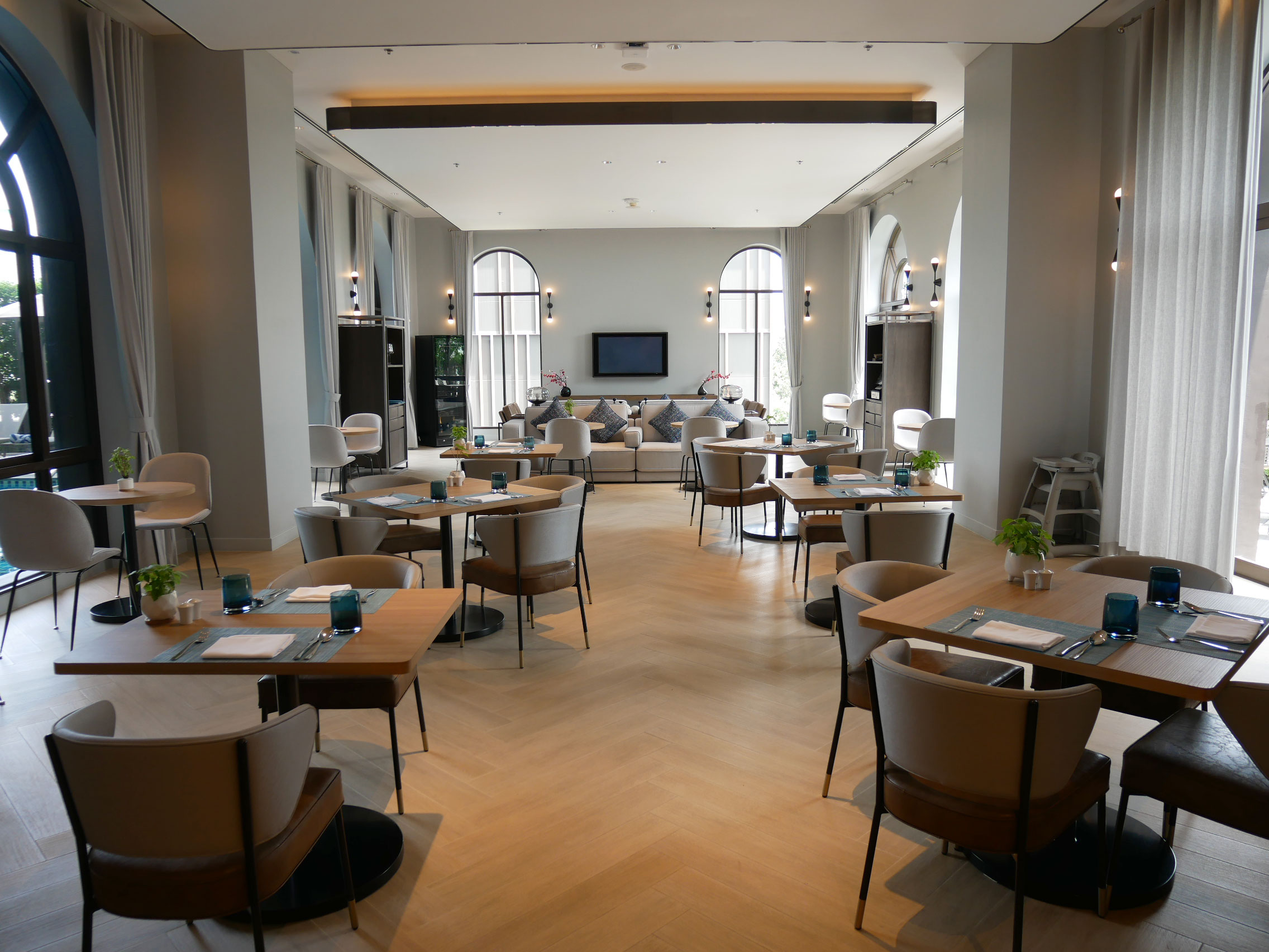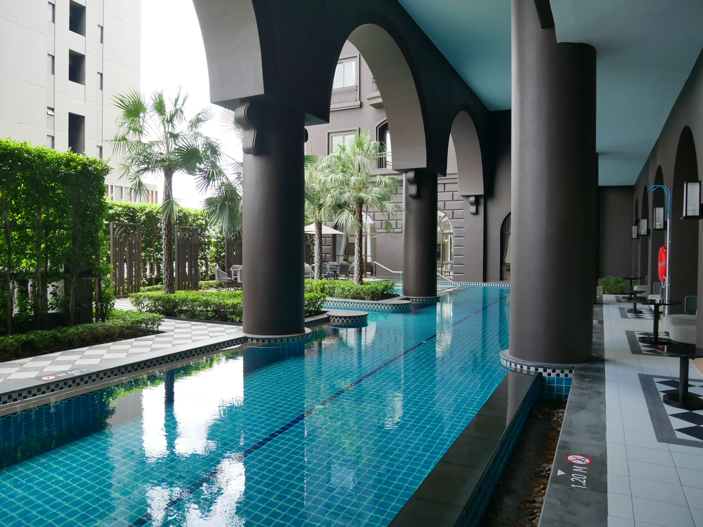 高級リゾートを思わせるプール、フィットネスジム、ミーティングルーム、朝食ビュッフェがとれる広いレストラン、駐車場などが完備されています。