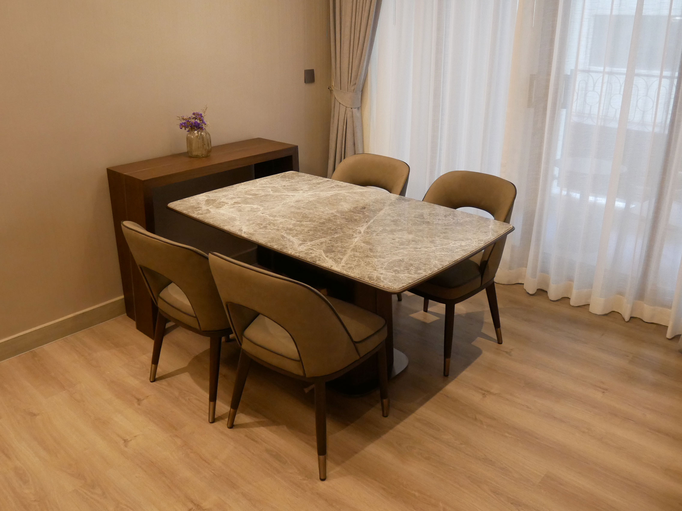 マリオットの高級感あふれるお部屋を存分に味わうことができます。間取りはスタジオ、ワンベッドルーム〜スリーベッドルームとなっており、いずれも家電など長期滞在に対応した設備が整っており、ほとんど買い足すものなく新生活をスタートすることができます。上質なインテリアには書斎デスクも完備され、在宅ワークも快適です。